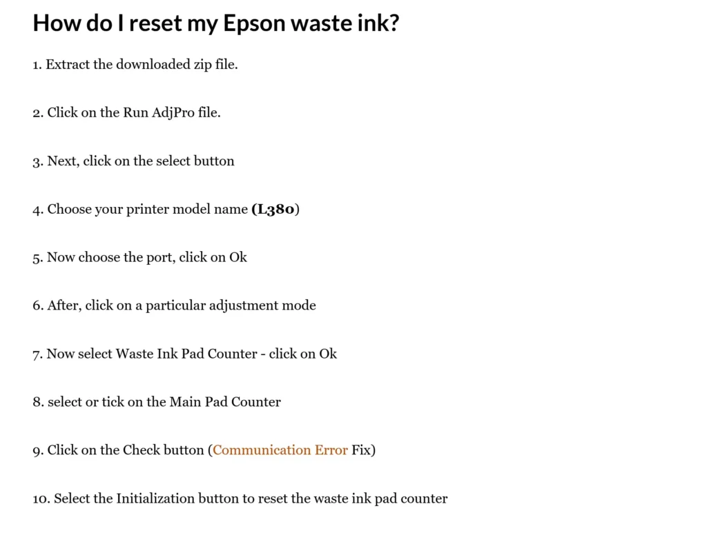 If the waste ink pad in your printer is full, you will get an “Epson l380 service required” problem. So check if the ink pad is full in your printer. If it is full, you may need to replace the ink pad. Also, you can reset it in seconds using the software. For this, you can easily fix it without visiting an Epson technician.